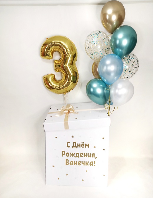 Цифра 1штКоробка 1штИндивидуальная надпись 1штФонтан:Перламутр 4штХром 4штС конфетти 2шт