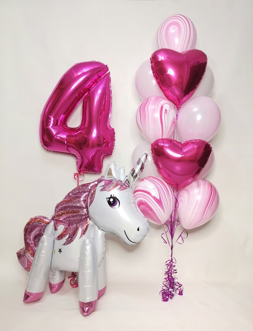В набор входит:Цифра 1штФигура Единорог 102см 1штФонтан:Сердце 2штАгат 4штПастель 7шт