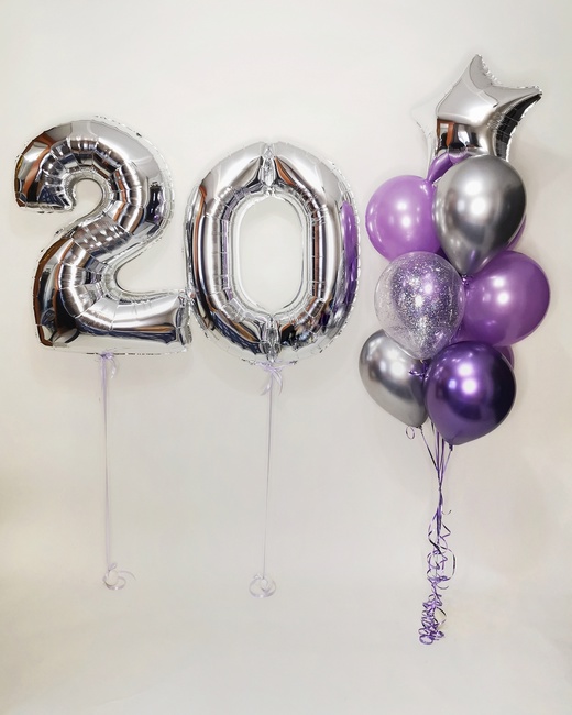 Цифра 2штФонтан:Перламутр 4штХром 4штС конфетти 1штЗвезда 1шт