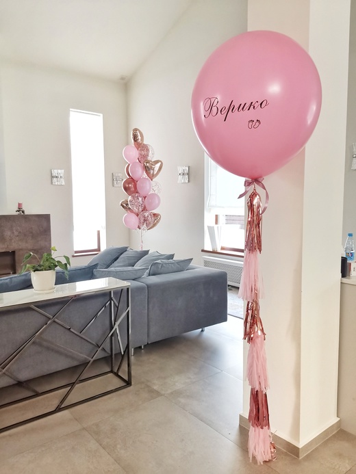 Шар гигант однотонный 1штНадпись любая 1штТассел (кисточки) 1шт