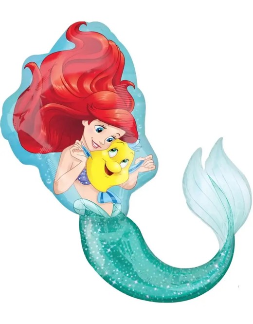 Фольгированный воздушный шар в виде фигуры принцессы Ариэль, красноволосой русалочки, играющей со своим другом, рыбкой Флаундером.