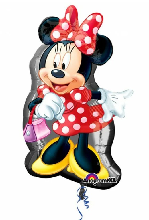 Фигурный шар из фольги в виде Минни Мауса в красном платье.Шар наполнен гелием.