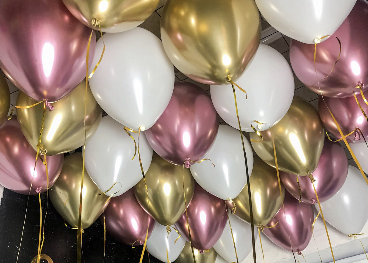 Латексные шары с обработкой для долгого полёта, наполненные гелием.