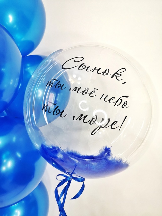 Прозрачный шар Bubble с перьями внутри и индивидуальной надписью станет особенным и запоминающимся подарком! Надпись можно разместить любую, на ваше усмотрение (печать индивидуальной надписи включена в стоимость).